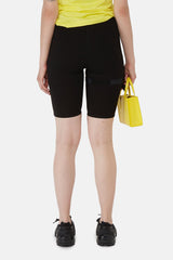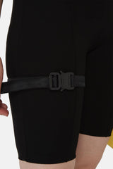Short long en rayonne noir 1017 Alyx 9SM à détails à boucle noir sur une jambe, coupe près du corps, taille élastique.