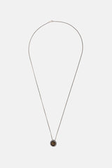 Collier Rosa Maria en argent, Quartz et diamants Icy, à effet usé, pendentif rond et fermoir mousqueton.