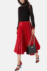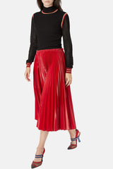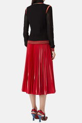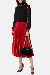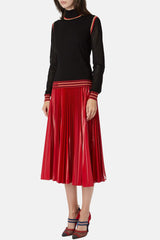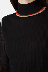 Pull côtelé Fendi noir, rouge et doré en soie, à détails de bandes, motif FF, effet jersey aux manches et col cheminé.