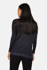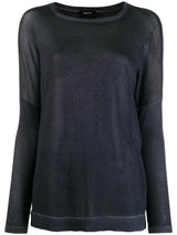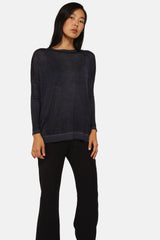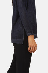 Pull Avant Toi bleu foncé en cachemire et en soie, à col rond, manches longues, ourlet fendu sur les côtés et bords côtelés.