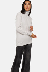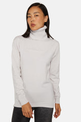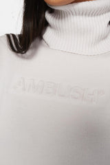 Pull AMBUSH® blanc en laine, nylon et polyuréthane, à col roulé, manches longues, logo embossé, et bords côtelés.
