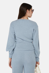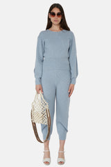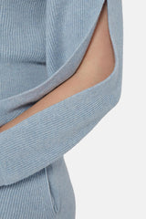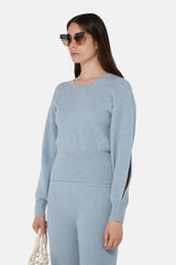 Pull en maille côtelée de cachemire et de laine bleu Stella McCartney à manches longues, col ras du cou, poignets nervurés, fentes latérales aux manches.