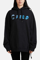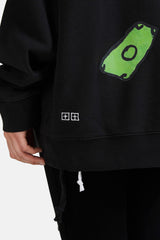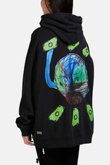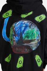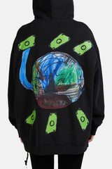 Sweat collection Ksubi x Hidji World "7 Deadly Sins" noir en coton, à capuche à lien à nouer, poche avant kangourou, logo à l'arrière et réalisation graphique imprimé représantant l'avarice des 7 Péchés Capitaux.